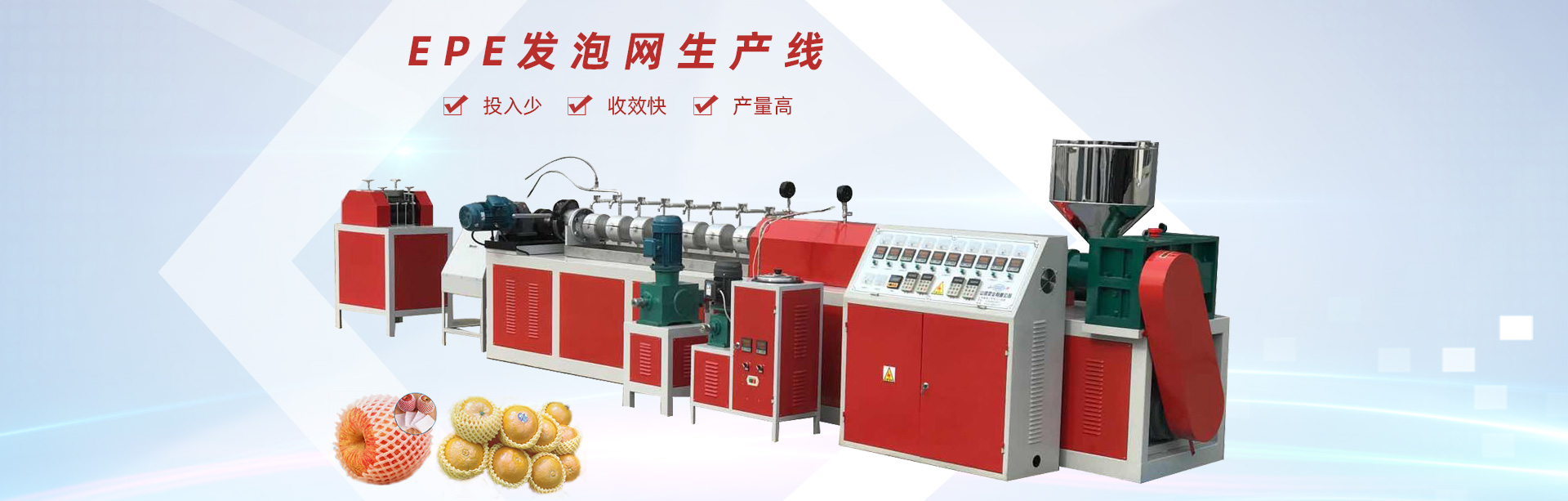 龍口市山河塑業(yè)有限公司生產(chǎn)的發(fā)泡網(wǎng)套機(jī),用于水果、蔬菜、花蕾及瓶類的外包裝。我公司具有多年的實(shí)踐經(jīng)驗(yàn)和可靠的技術(shù)力量,根據(jù)市場(chǎng)需求開(kāi)發(fā)各種規(guī)格的網(wǎng)套。每24小時(shí)生產(chǎn)蘋果網(wǎng)套80萬(wàn)-120萬(wàn)個(gè),設(shè)備驅(qū)動(dòng)電機(jī)采用變頻控制,調(diào)速精度高、范圍廣、能耗低、運(yùn)行可靠每小時(shí)僅用電10度左右,產(chǎn)量提高。此外,該生產(chǎn)線配置不同的模頭和輔機(jī)可生產(chǎn)發(fā)泡片、發(fā)泡管、發(fā)泡棒、發(fā)泡條及異型材等產(chǎn)品。
